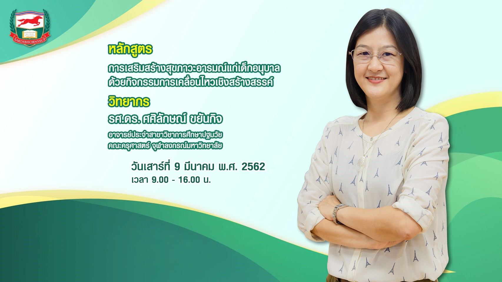 คลิปวิดีโอ : การเสริมสร้างสุขภาวะอารมณ์แก่เด็กอนุบาลด้วยกิจกรรมการเคลื่อนไหวเชิงสร้างสรรค์ วิทยากร : รศ.ดร.ศศิลักษณ์ ขยันกิจ