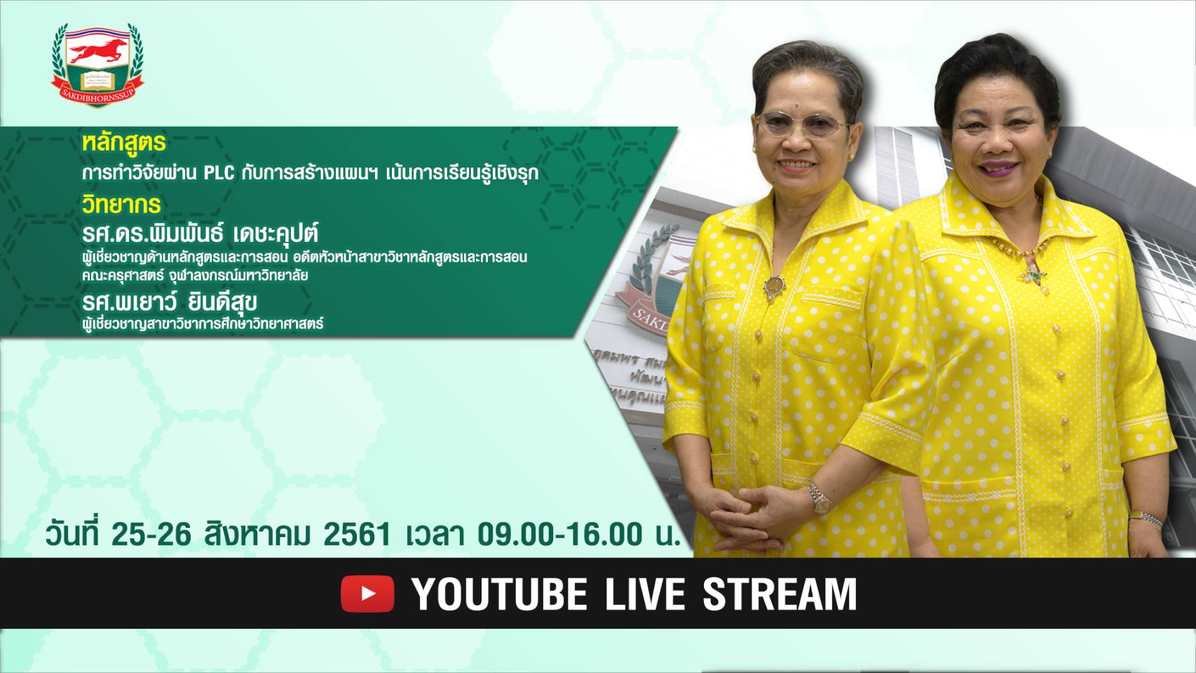 ชมถ่ายทอดสดผ่าน Youtube Liveในวันเสาร์ที่ 25 สิงหาคม 2561 เวลา 08.30-16.00 น.