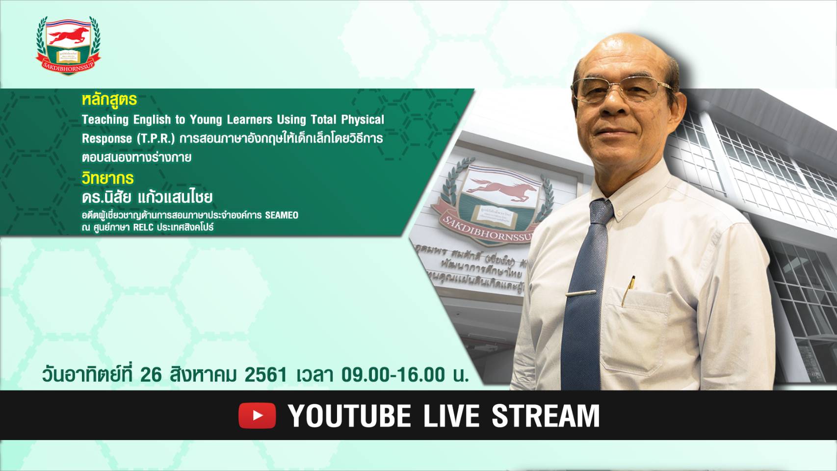 ถ่ายทอดสดผ่าน Youtube Live ในวันอาทิตย์ที่ 26 สิงหาคม 2561 เวลา 08.30-16.00 น.