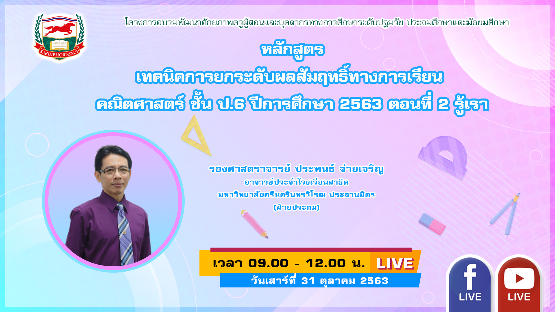 หลักสูตร : เทคนิคการยกระดับผลสัมฤทธิ์ทางการเรียนคณิตศาสตร์ ป.6 ปีการศึกษา 2563
