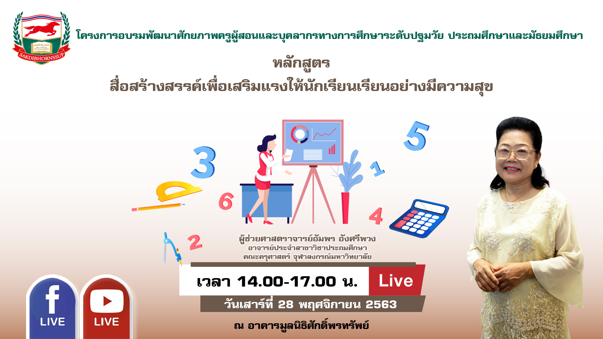 ข่าวประชาสัมพันธ์ ตรวจสอบรายชื่อผู้มีสิทธิ์เข้ารับการอบรม ประกาศรายชื่อผู้เข้าอบรมออนไลน์ : วันเสาร์ที่ 28พฤศจิกายน 2563 เวลา 14.00-17.00 น. วิทยากร : ผู้ช่วยศาสตราจารย์อัมพร อังศรีพวง November 27, 2020November 27, 2020 kusol admin วันเสาร์ที่ 28 พฤศจิกายน 2563 เวลา 14.00-17.00 น. หลักสูตร : “สื่อสร้างสรรค์เพื่อเสริมแรงให้นักเรียนเรียนอย่างมีความสุข” วิทยากร : ผู้ช่วยศาสตราจารย์อัมพร อังศรีพวง ดูรายชื่อ 👉 คลิก เข้าร่วมกลุ่มไลน์ 👉 คลิก หรือ Scan QR Code