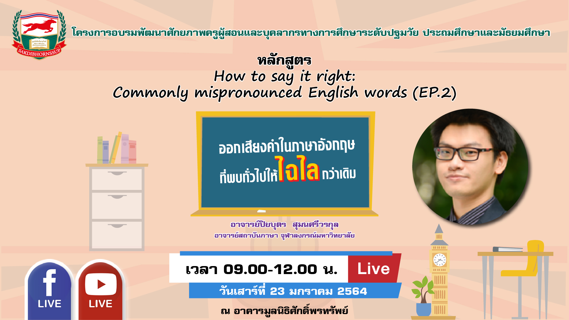 วันเสาร์ที่ 23 มกราคม 2564 เวลา 09.00-12.00 น.