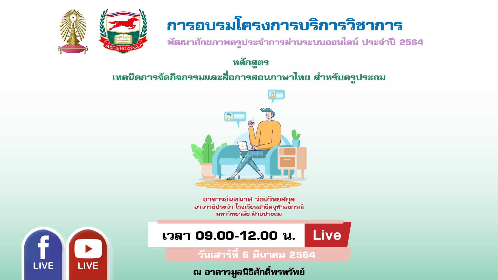 วันเสาร์ที่ 6 มีนาคม 2564 เวลา 09.00-12.00 น.