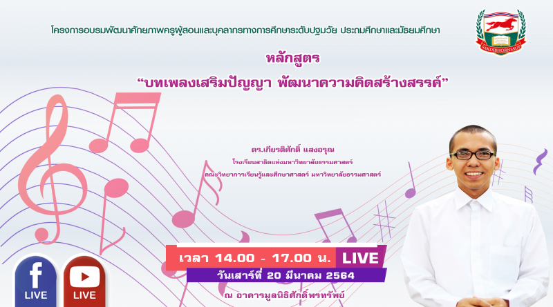 - ประกาศรายชื่อผู้เข้าอบรมออนไลน์ : วันเสาร์ที่ 20 มีนาคม 2564 เวลา 14.00-17.00 น. วิทยากร : อาจารย์ภณสมิทธิ์ ธัญสมิทธิโภคิน