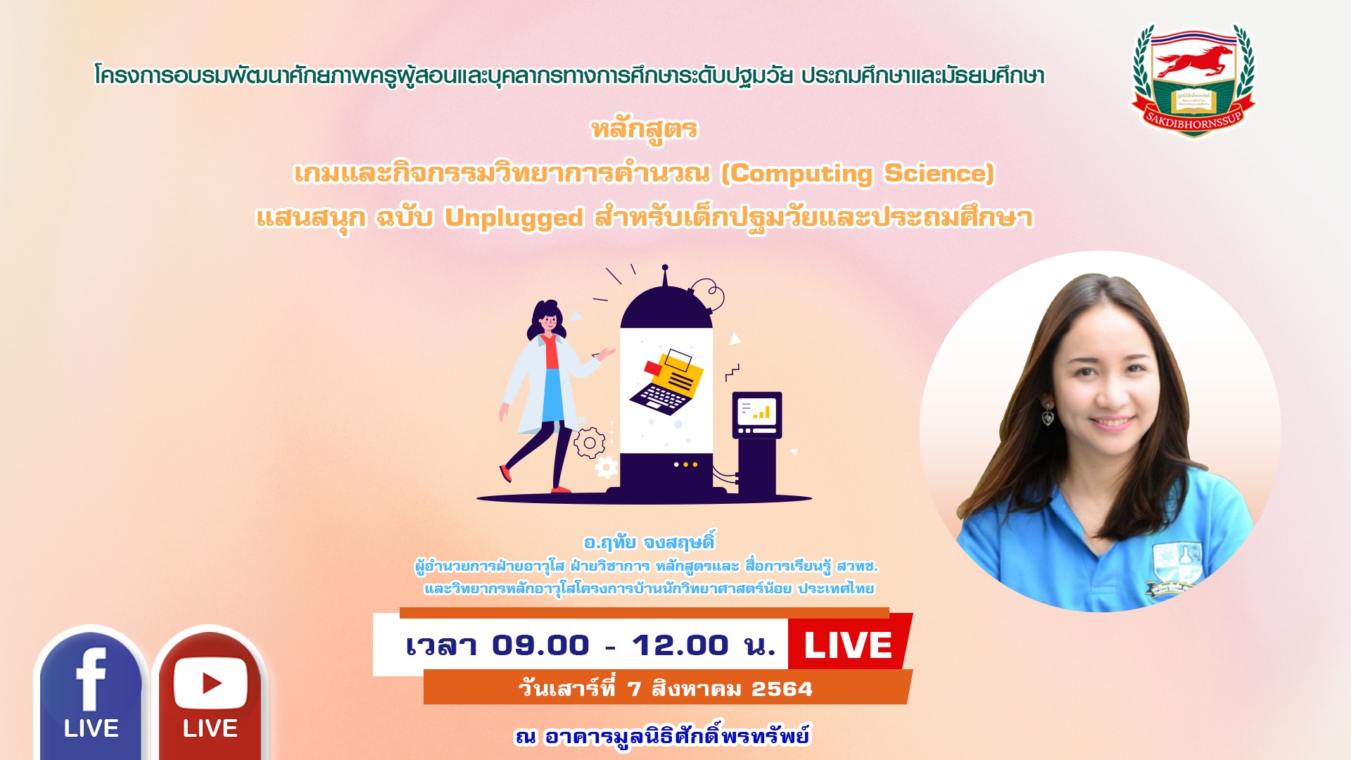 วันเสาร์ที่ 7 สิงหาคม 2564 เวลา 09.00-12.00 น.