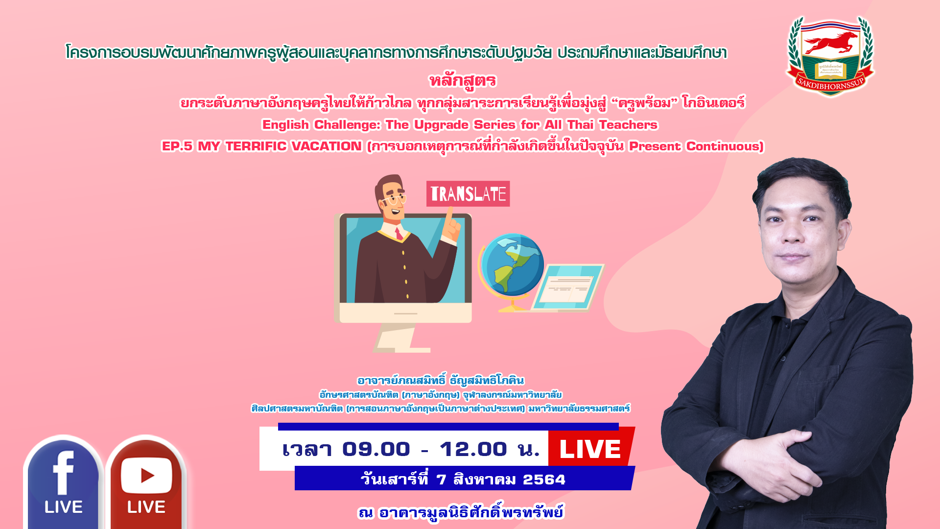 ยกระดับภาษาอังกฤษครูไทยให้ก้าวไกลทุกกลุ่มสาระการเรียนรู้เพื่อมุ่งสู่ “ครูพร้อม” โกอินเตอร์ English Challenge: The Upgrade Series for All Thai Teachers EP.5 MY TERRIFIC VACATION (การบอกเหตุการณ์ที่กำลังเกิดขึ้นในปัจจุบัน Present Continuous)