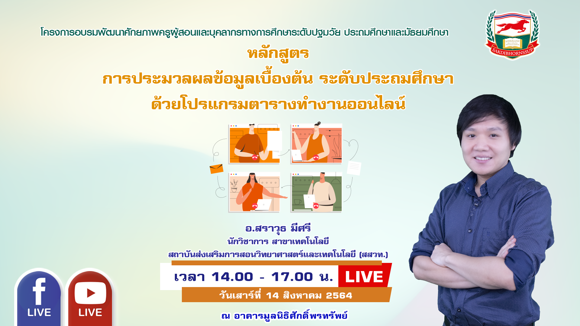 วันเสาร์ที่ 14 สิงหาคม 2564 เวลา 14.00-17.00 น.