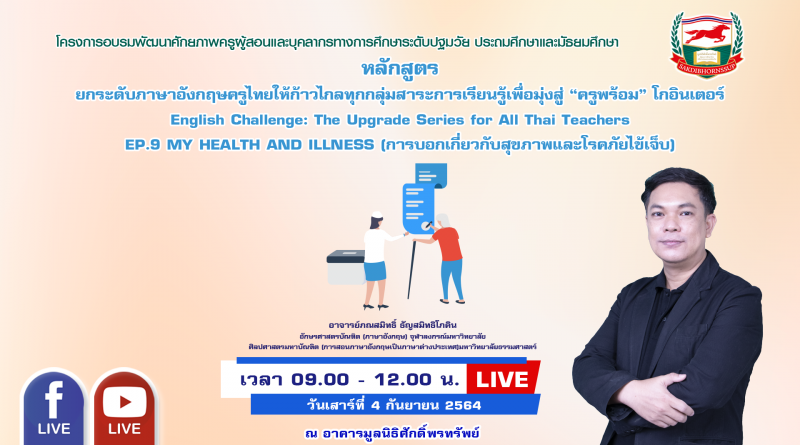 : ยกระดับภาษาอังกฤษครูไทยให้ก้าวไกลทุกกลุ่มสาระการเรียนรู้เพื่อมุ่งสู่ “ครูพร้อม” โกอินเตอร์English Challenge: The Upgrade Series for All Thai Teachers EP.9 MY HEALTH AND ILLNESS(การบอกเกี่ยวกับสุขภาพและโรคภัยไข้เจ็บ)