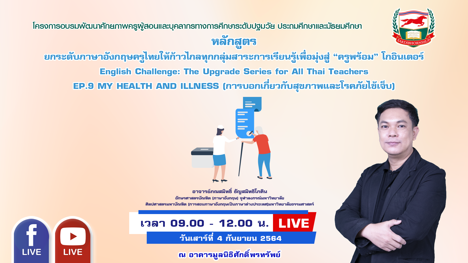 : ยกระดับภาษาอังกฤษครูไทยให้ก้าวไกลทุกกลุ่มสาระการเรียนรู้เพื่อมุ่งสู่ “ครูพร้อม” โกอินเตอร์English Challenge: The Upgrade Series for All Thai Teachers EP.9 MY HEALTH AND ILLNESS(การบอกเกี่ยวกับสุขภาพและโรคภัยไข้เจ็บ)