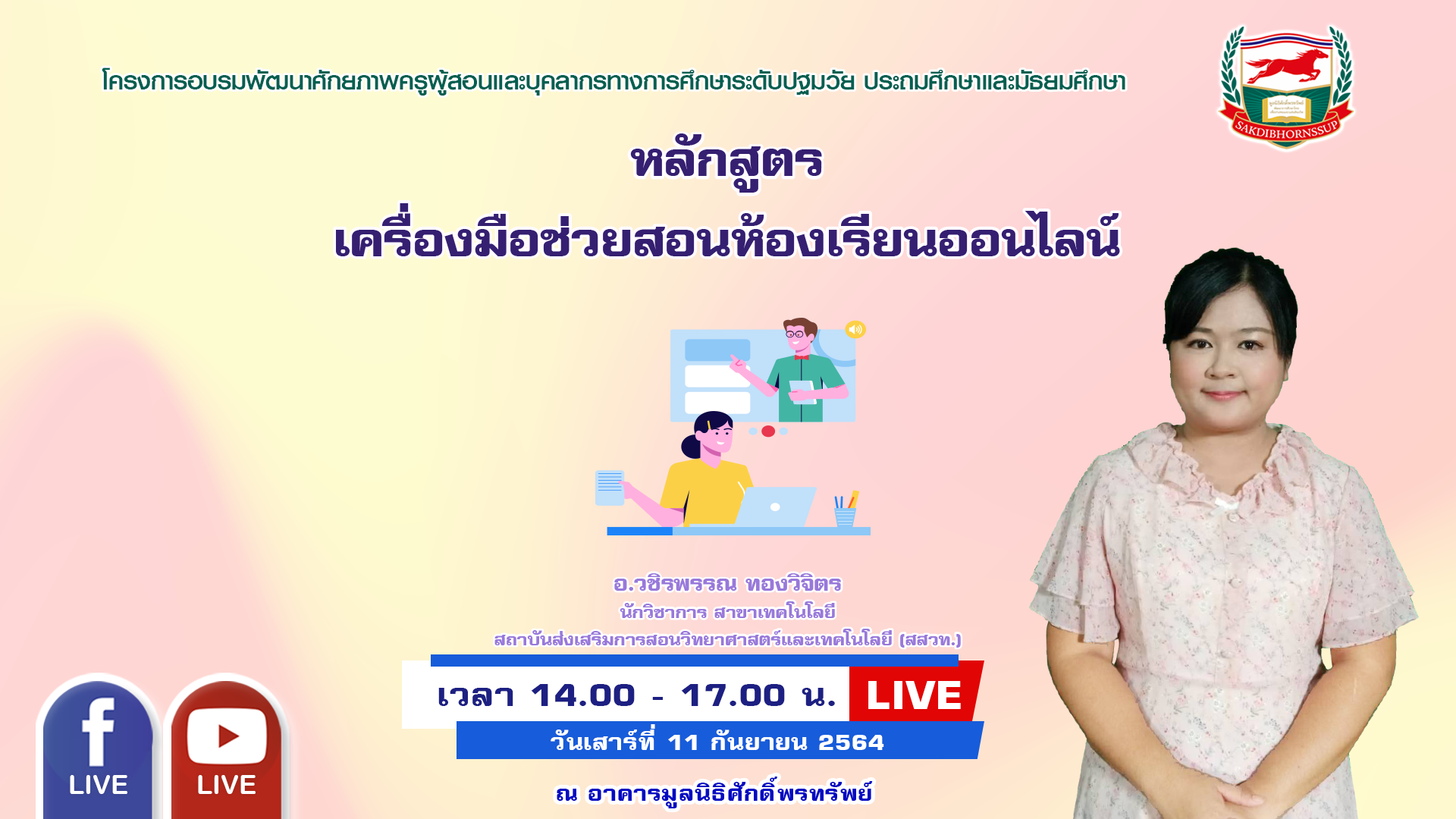 ประกาศรายชื่อผู้เข้าอบรมออนไลน์ : วันเสาร์ที่ 11 กันยายน 2564 เวลา 14.00-17.00 น. วิทยากร : อาจารย์วชิรพรรณ ทองวิจิตร