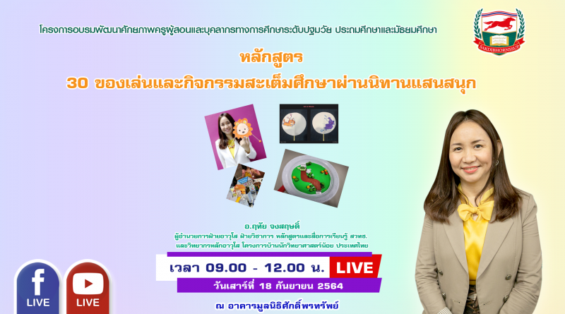 ประกาศรายชื่อผู้เข้าอบรมออนไลน์ : วันเสาร์ที่ 18 กันยายน 2564 เวลา 9.00-12.00 น. วิทยากร : อาจารย์ฤทัย จงสฤษดิ์