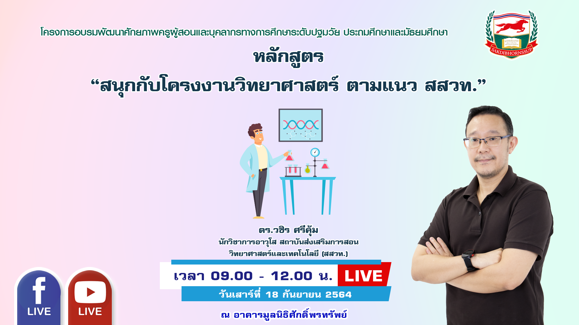 วันเสาร์ที่ 18 กันยายน เวลา 9.00-12.00 น.
