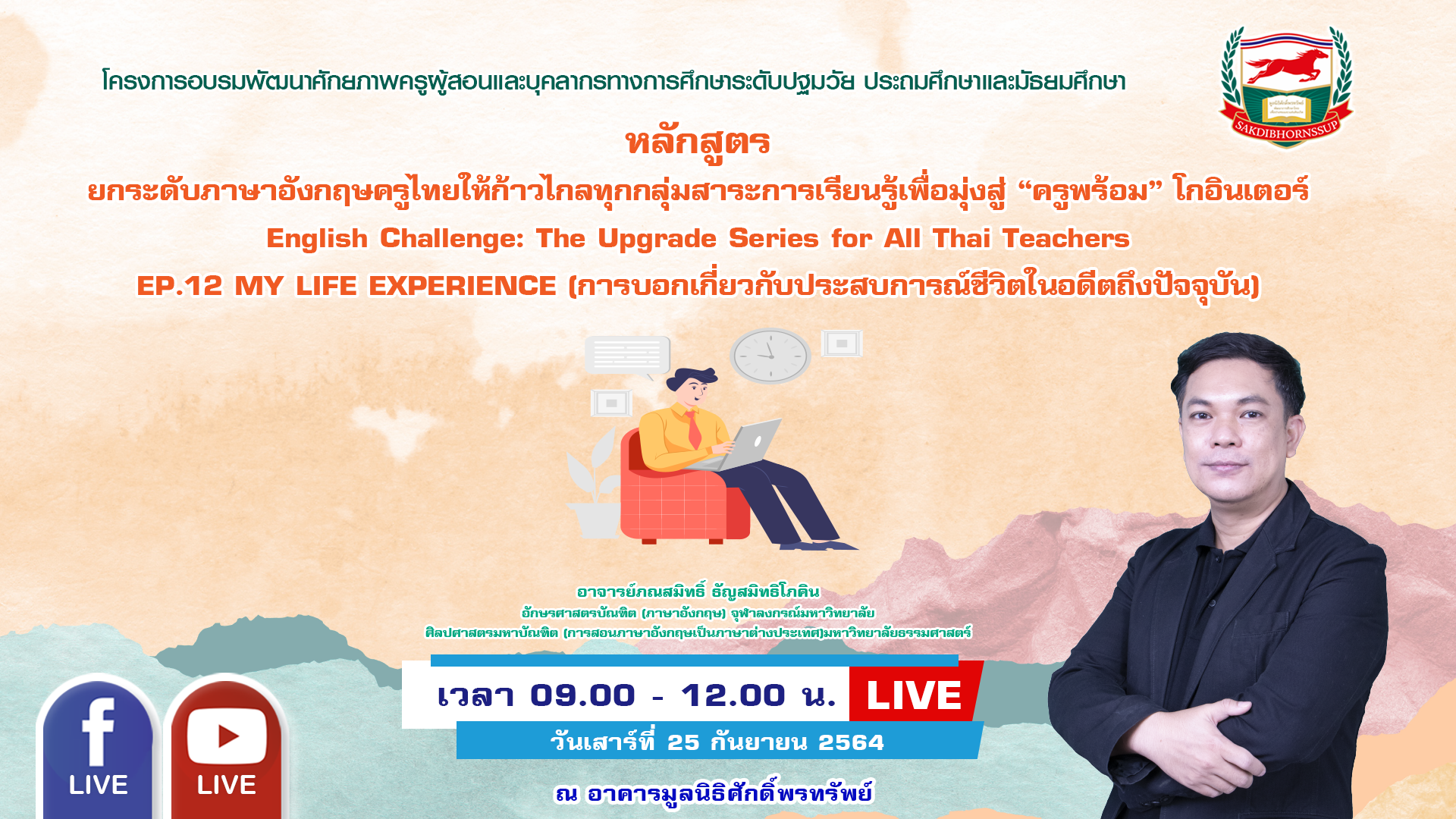 : ยกระดับภาษาอังกฤษครูไทยให้ก้าวไกลทุกกลุ่มสาระการเรียนรู้เพื่อมุ่งสู่ “ครูพร้อม” โกอินเตอร์ English Challenge: The Upgrade Series for All Thai Teachers EP.12 MY LIFE EXPERIENCE (การบอกเกี่ยวกับประสบการณ์ชีวิตในอดีตถึงปัจจุบัน)
