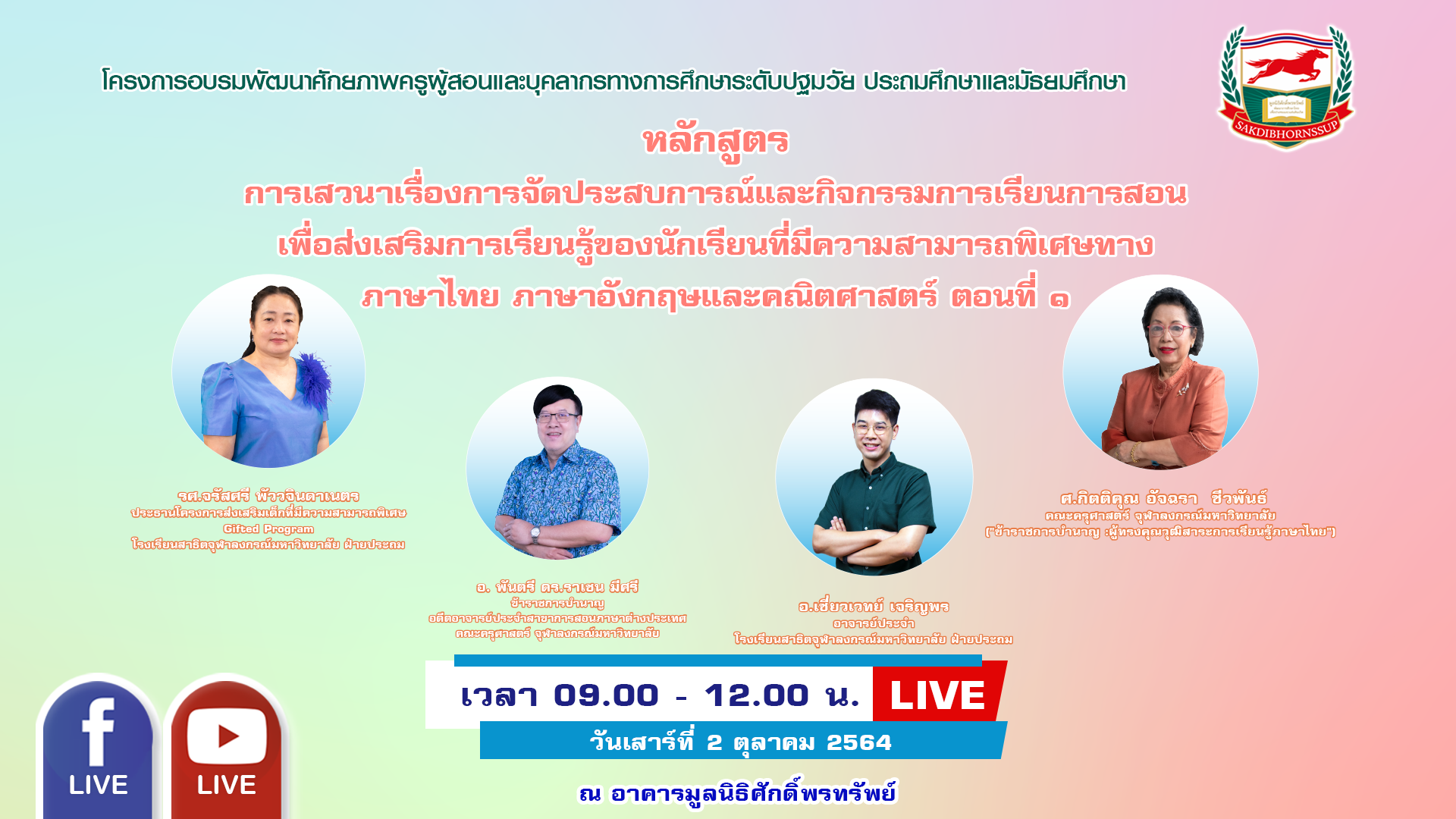 : การเสวนาเรื่องการจัดประสบการณ์และกิจกรรมการเรียนการสอนเพื่อส่งเสริมการเรียนรู้ของนักเรียนที่มีความสามารถพิเศษทางภาษาไทย ภาษาอังกฤษและคณิตศาสตร์ ตอนที่ ๑