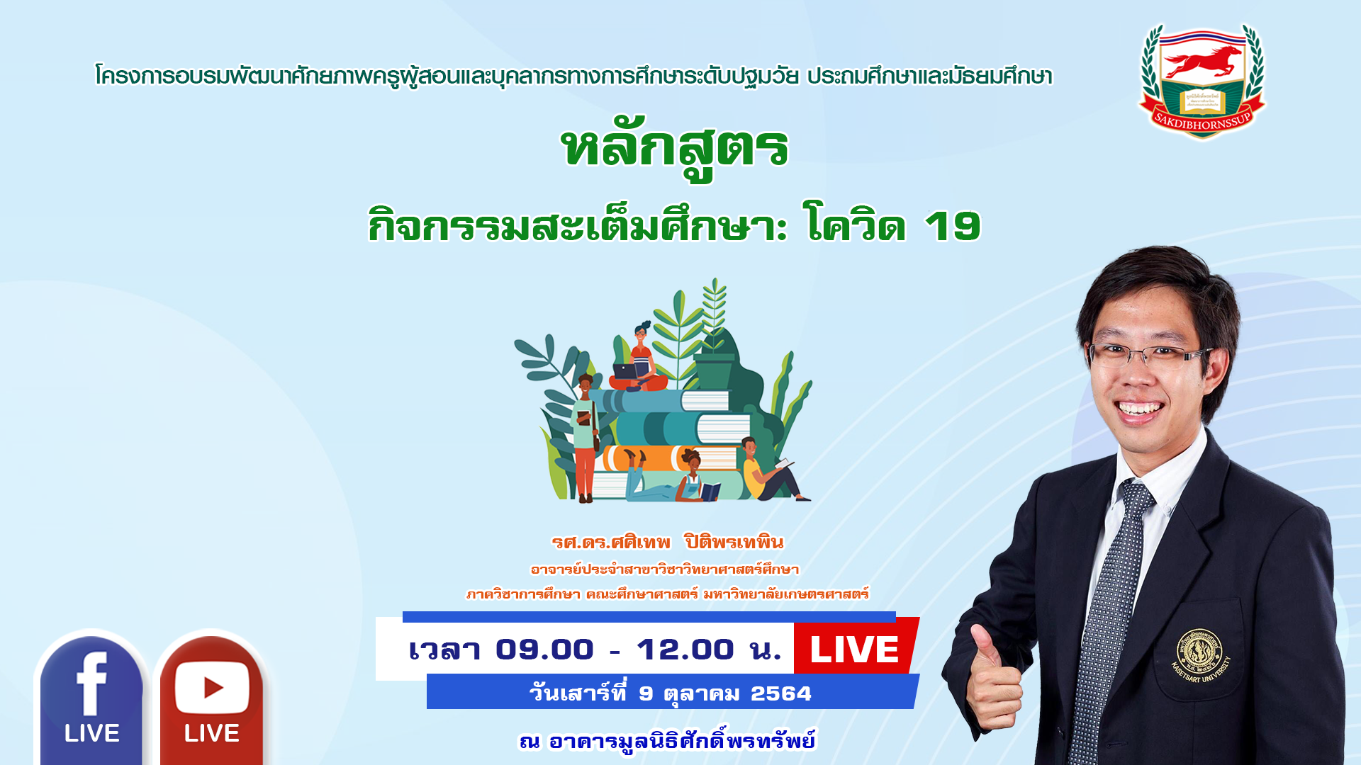 ประกาศรายชื่อผู้เข้าอบรมออนไลน์ : วันเสาร์ที่ 9 ตุลาคม 2564 เวลา 9.00-12.00 น. วิทยากร : รองศาสตราจารย์ดร.ศศิเทพ ปิติพรเทพิน