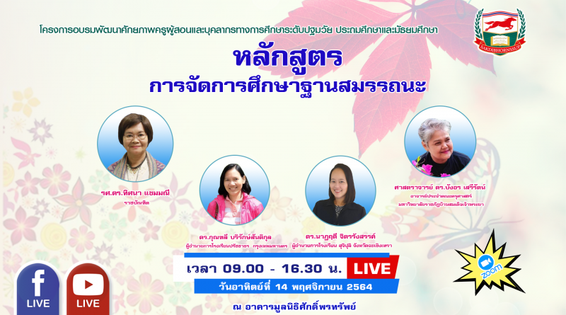การจัดการศึกษาฐานสมรรถนะ (สำหรับครู อาจารย์ท่านอื่นๆที่สนใจเข้าร่วมอบรมในครั้งนี้สามารถเข้ามาร่วมเรียนรู้ได้ตลอดหลักสูตรทั้ง2วัน ผ่านfacebook liveของมูลนิธิฯ หลักสูตรนี้จะไม่มีใบรับรองการเข้ารับการอบรมให้ เนื่องจากหลักสูตรนี้เป็นหลักสูตรเฉพาะ)