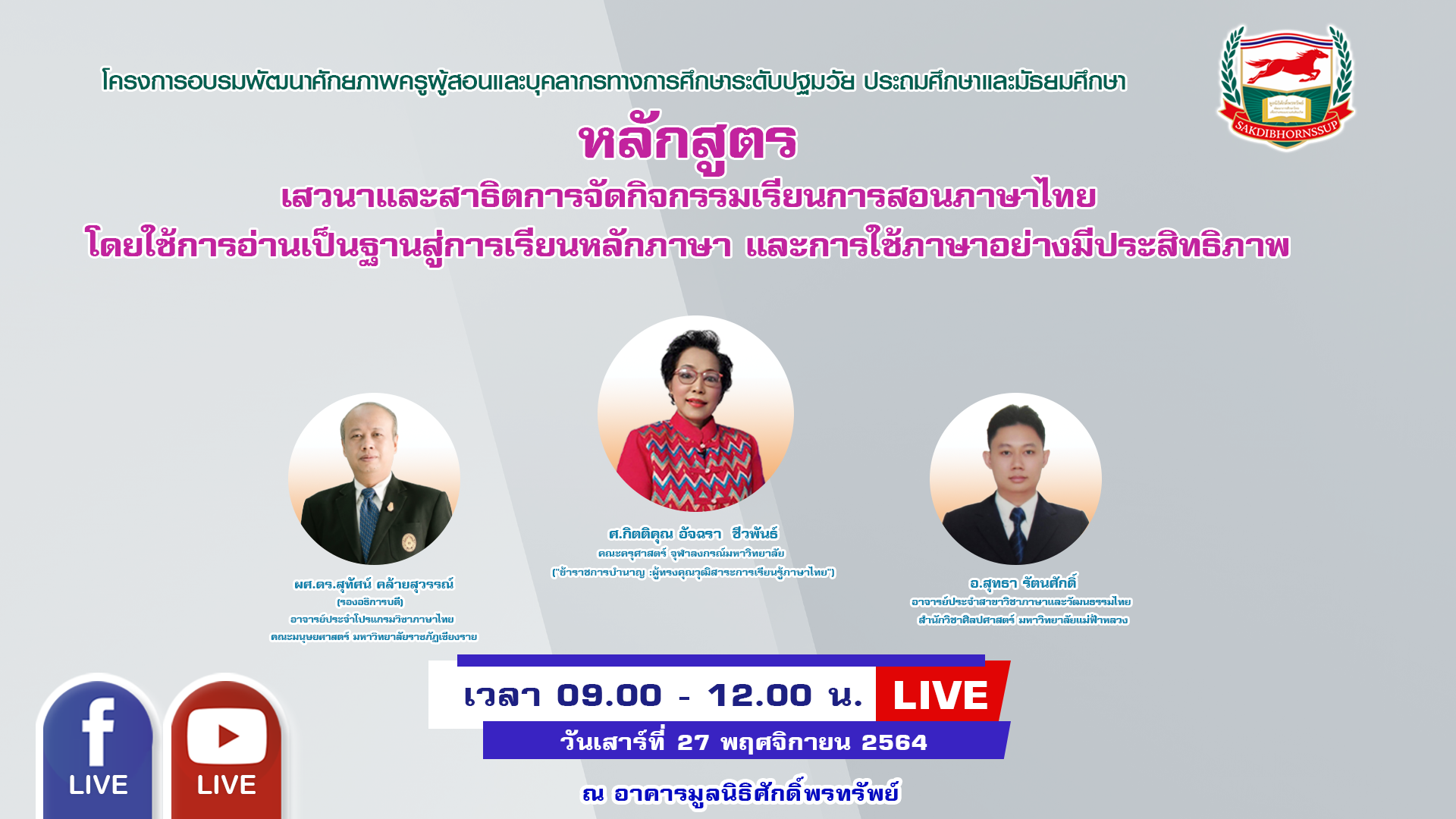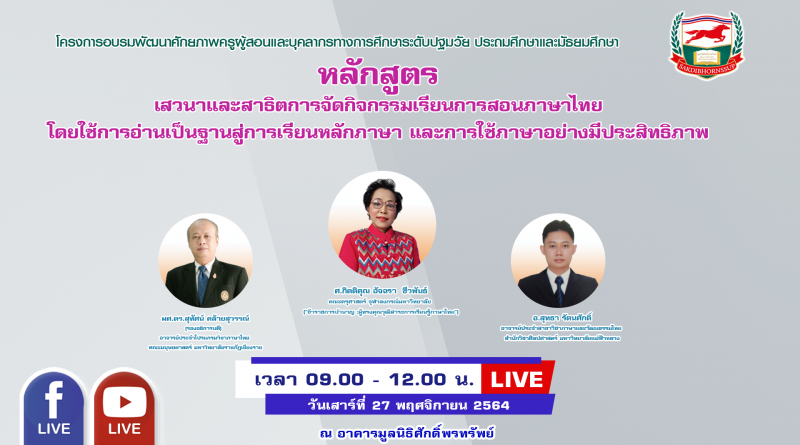 เสวนาและสาธิตการจัดกิจกรรมเรียนการสอนภาษาไทยโดยใช้การอ่านเป็นฐานสู่การเรียนหลักภาษาและการใช้ภาษาอย่างมีประสิทธิภาพ