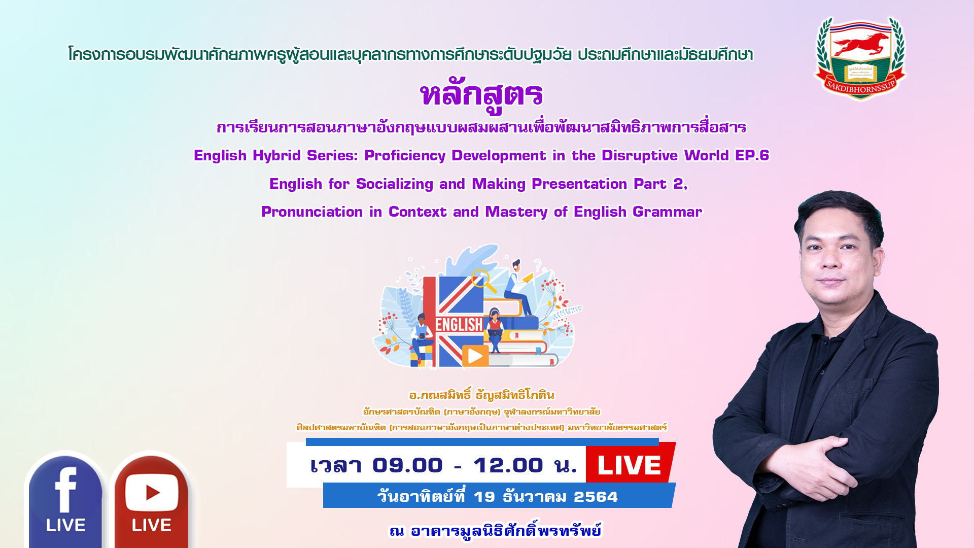 การเรียนการสอนภาษาอังกฤษแบบผสมผสานเพื่อพัฒนาสมิทธิภาพการสื่อสาร English Hybrid Series: Proficiency Development in the Disruptive World EP.6 English for Socializing(Making Presentations Part 2),