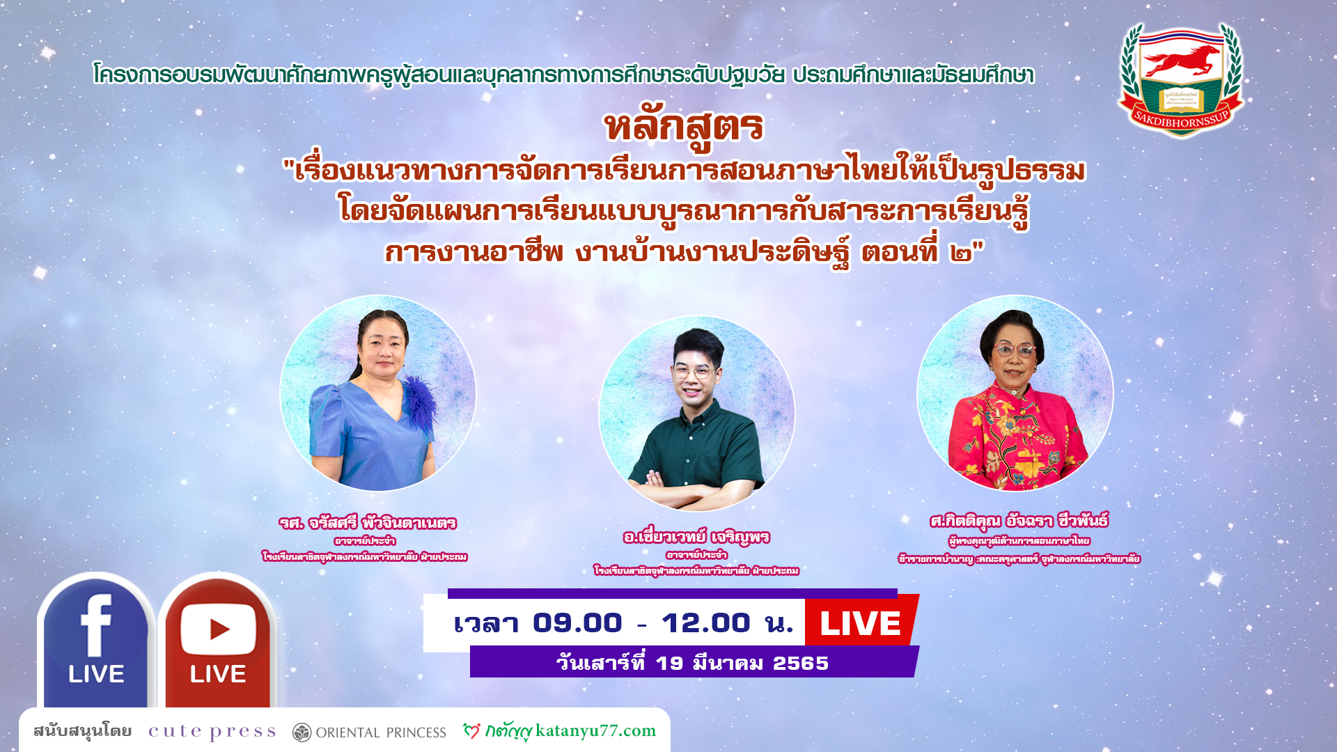 วันเสาร์ที่ 19 มีนาคม 2565 เวลา 09.00-12.00 น.