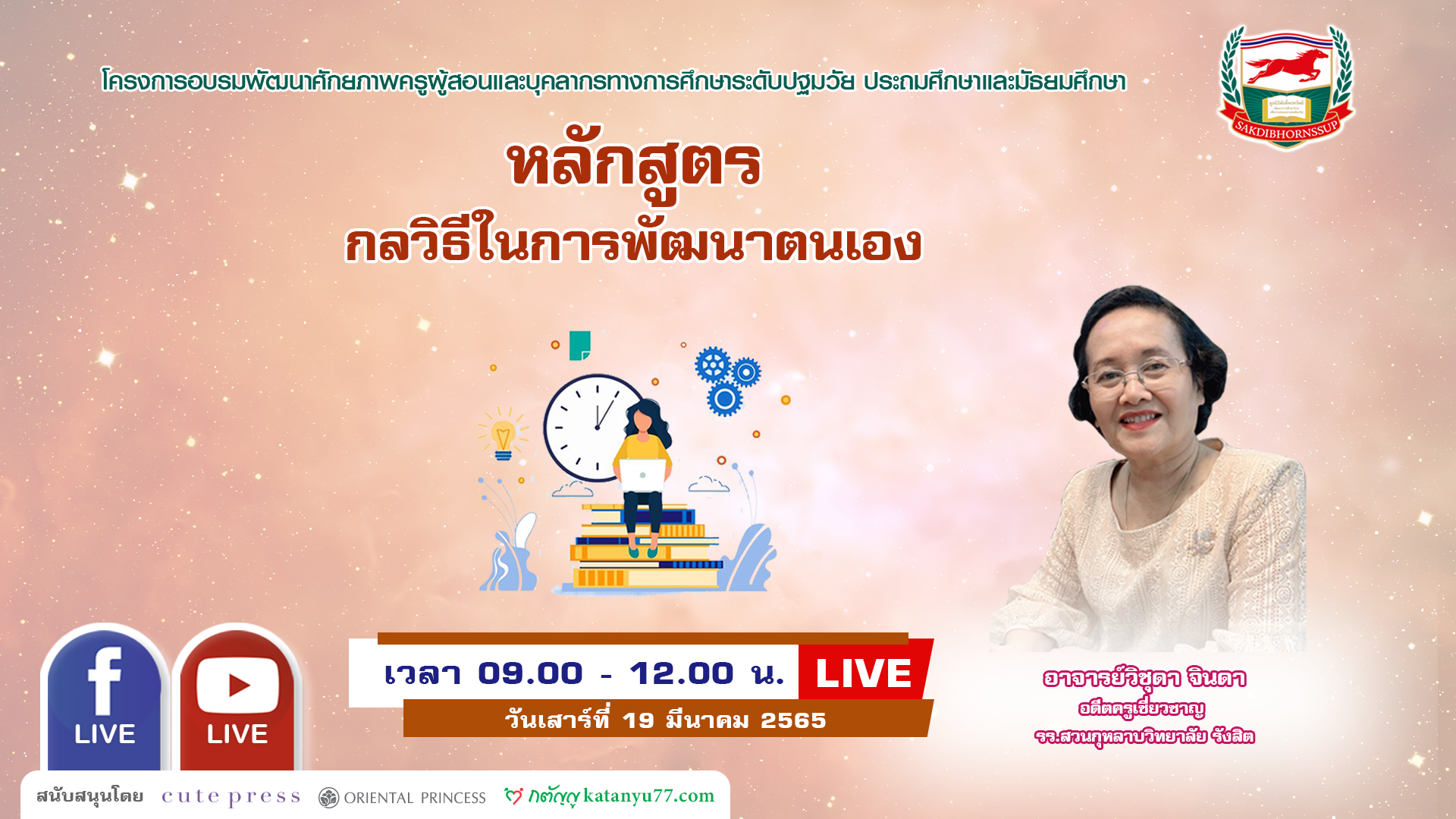 ประกาศรายชื่อผู้เข้าอบรมออนไลน์ : วันเสาร์ที่ 19 มีนาคม 2565 เวลา 09.00-12.00 น. วิทยากร : อาจารย์วิชุดา จินดา