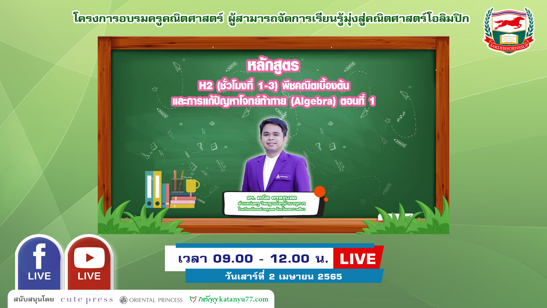 ประกาศรายชื่อผู้เข้าอบรมออนไลน์ : วันเสาร์ที่ 2 เมษายน 2565 เวลา 09.00-12.00 น. วิทยากร : ดร. คณิต ครุฑขุนทด