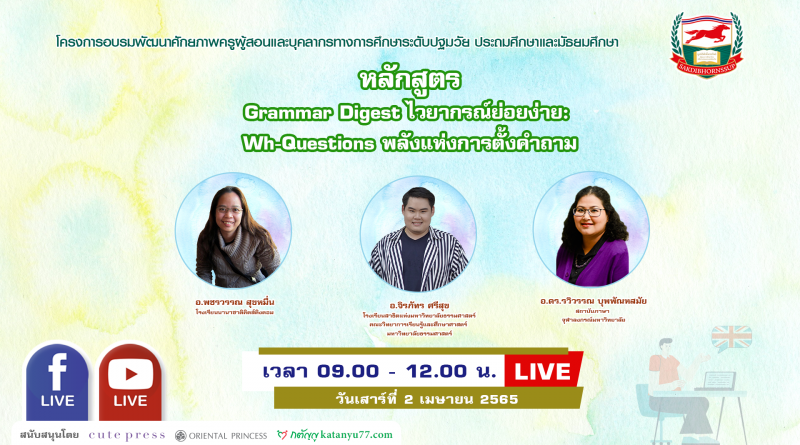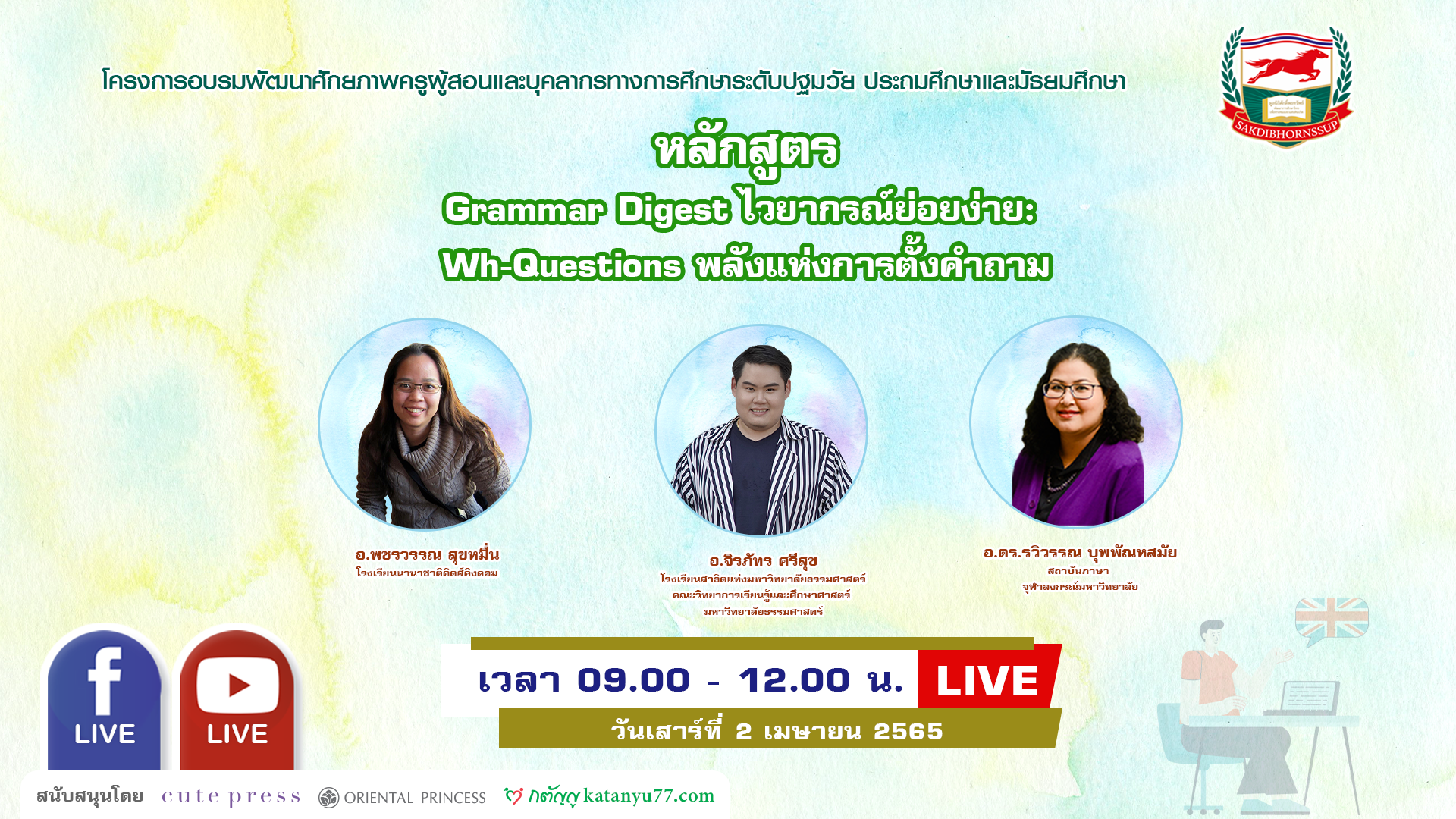 ประกาศรายชื่อผู้เข้าอบรมออนไลน์ : วันเสาร์ที่ 2 เมษายน 2565 เวลา 09.00-12.00 น. วิทยากร : อ.จิรภัทร ศรีสุข