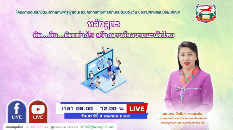 ประกาศรายชื่อผู้เข้าอบรมออนไลน์ : วันเสาร์ที่ 9 เมษายน 2565 เวลา 09.00-12.00 น. วิทยากร : ผศ.ดร.รัชนีกร หงส์พนัส