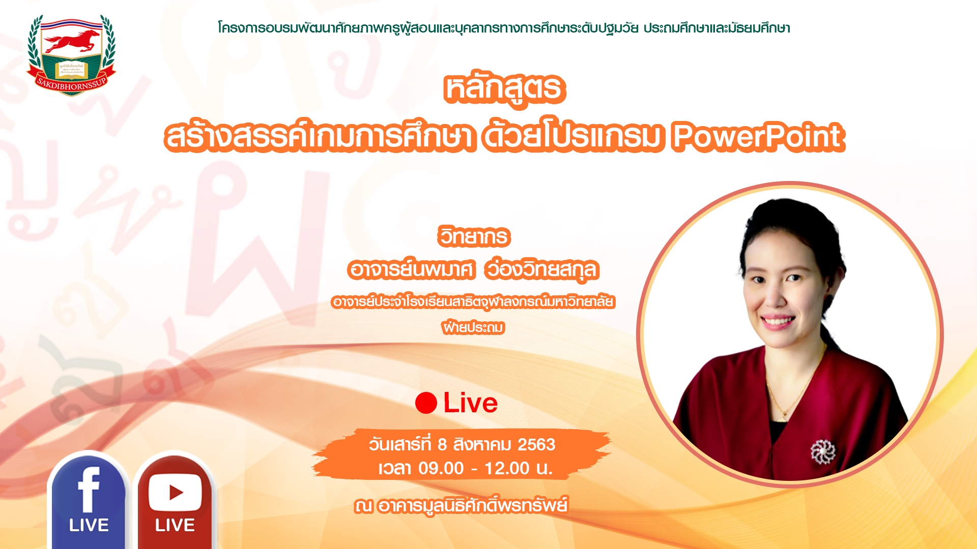 วันเสาร์ที่ 8 สิงหาคม 2563 เวลา 09.00-12.00 น.