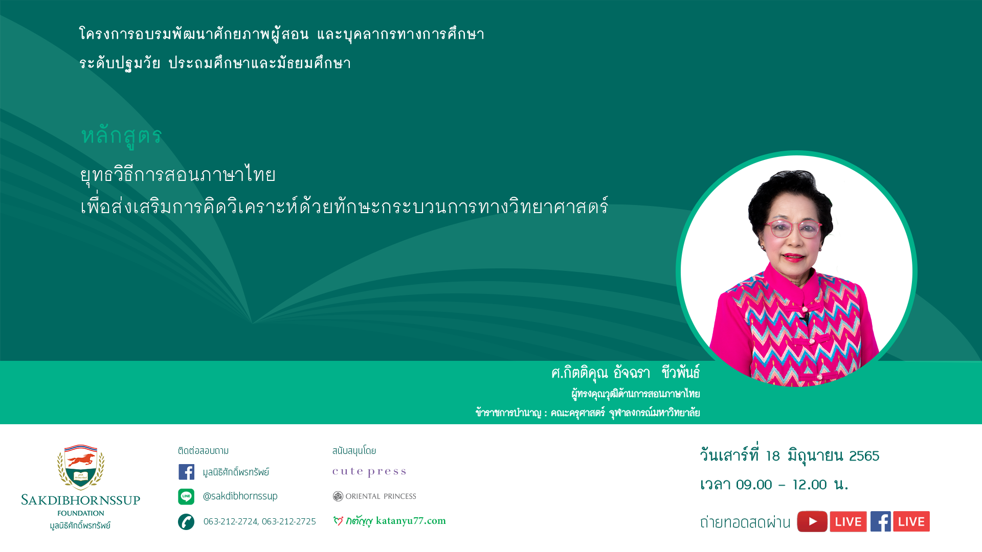 ประกาศรายชื่อผู้เข้าอบรมออนไลน์ : วันเสาร์ที่ 18 มิถุนายน 2565 เวลา 09.00-12.00 น. วิทยากร : ศ.กิตติคุณ อัจฉรา ชีวพันธ์