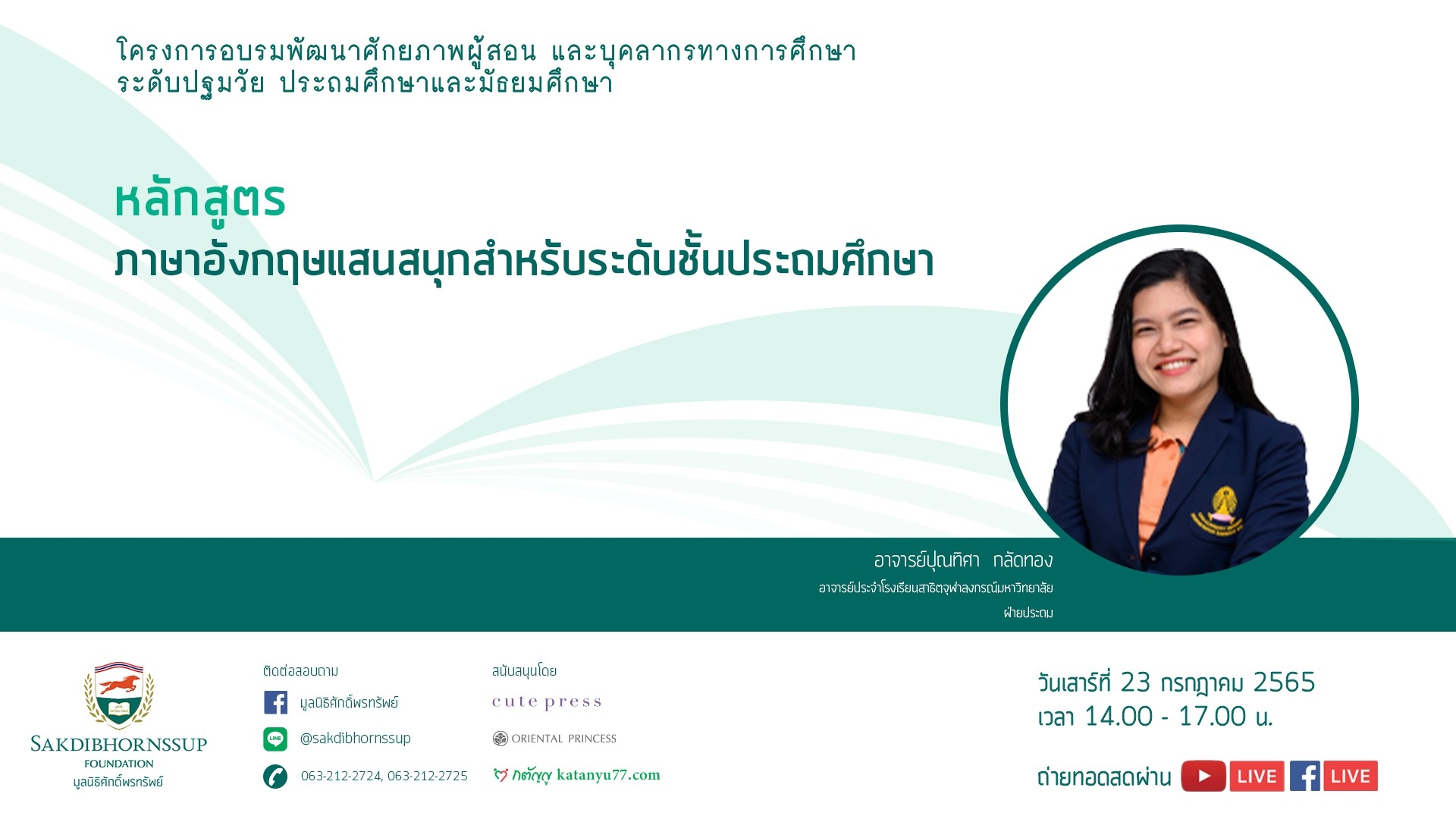 ประกาศรายชื่อผู้เข้าอบรมออนไลน์ : วันเสาร์ที่ 23 กรกฎาคม 2565 เวลา 14.00-17.00 น. วิทยากร : อ.ปุณทิศา กลัดทอง