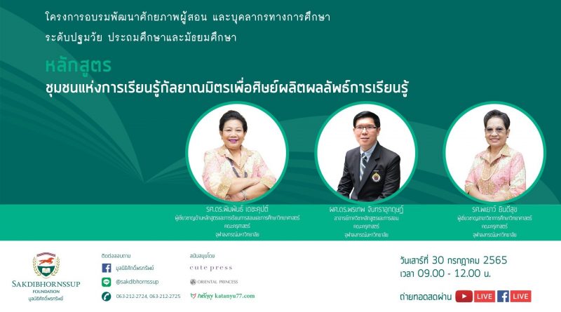 ประกาศรายชื่อผู้เข้าอบรมออนไลน์ : วันเสาร์ที่ 30 กรกฎาคม 2565 เวลา 9.00-12.00 น. วิทยากร : รศ. ดร.พิมพันธ์ เดชะคุปต์ – รศ.พเยาว์ ยินดีสุข – ผศ.ดร.พรเทพ จันทราอุกฤษฏ์
