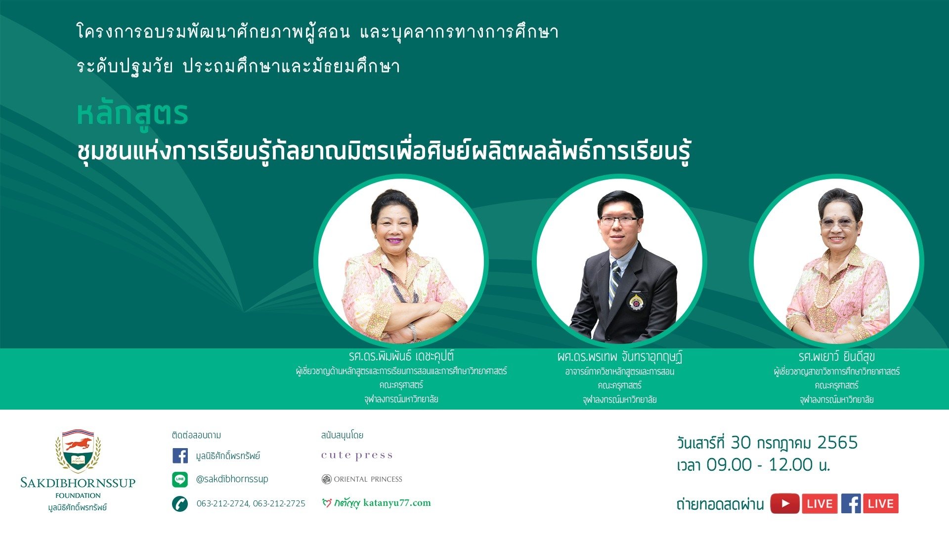 ประกาศรายชื่อผู้เข้าอบรมออนไลน์ : วันเสาร์ที่ 30 กรกฎาคม 2565 เวลา 9.00-12.00 น. วิทยากร : รศ. ดร.พิมพันธ์ เดชะคุปต์ – รศ.พเยาว์ ยินดีสุข – ผศ.ดร.พรเทพ จันทราอุกฤษฏ์