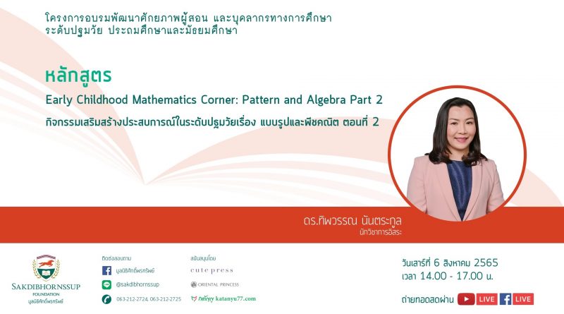 หลักสูตร : Early Childhood Mathematics Corner: Pattern and Algebra Part 2 กิจกรรมเสริมสร้างประสบการณ์ในระดับปฐมวัยเรื่อง แบบรูปและพีชคณิต ตอนที่ 2