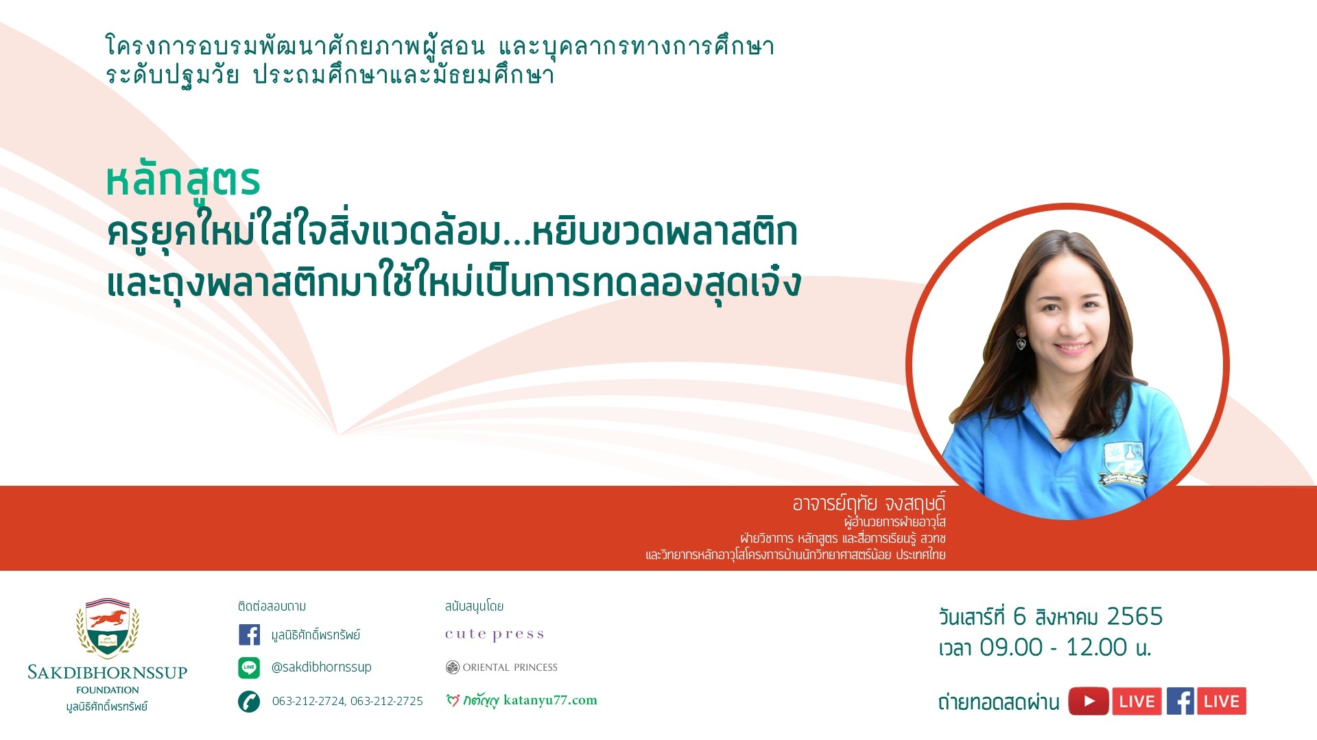 ประกาศรายชื่อผู้เข้าอบรมออนไลน์ : วันเสาร์ที่ 6 สิงหาคม 2565 เวลา 09.00-12.00 น. วิทยากร : อาจารย์ฤทัย จงสฤษดิ์