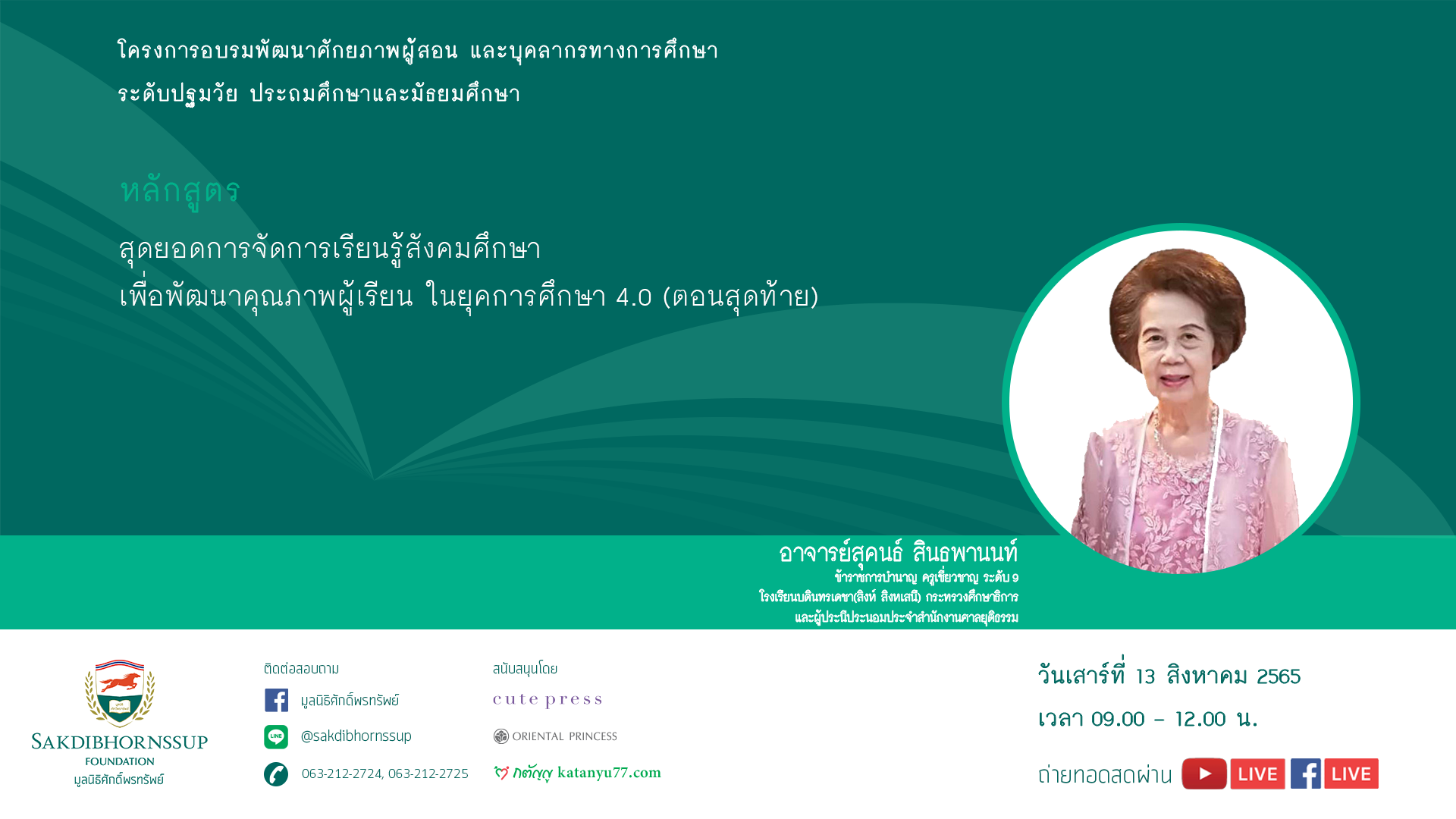 หลักสูตร : สุดยอดการจัดการเรียนรู้สังคมศึกษา…เพื่อพัฒนาคุณภาพผู้เรียน ในยุคการศึกษา 4.0