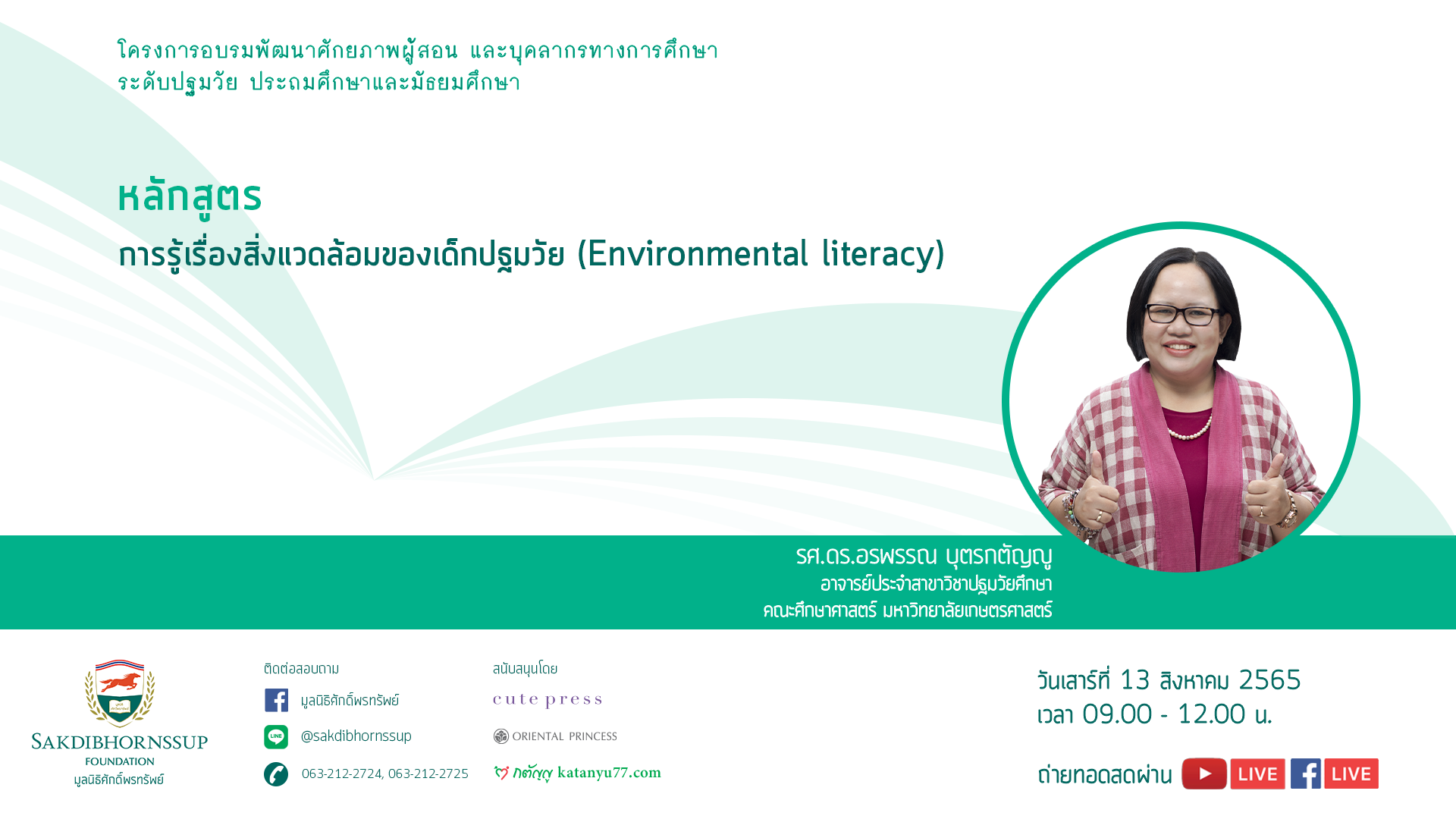 ประกาศรายชื่อผู้เข้าอบรมออนไลน์ : วันเสาร์ที่ 13 สิงหาคม 2565 เวลา 09.00-12.00 น. วิทยากร : รศ.ดร.อรพรรณ บุตรกตัญญู