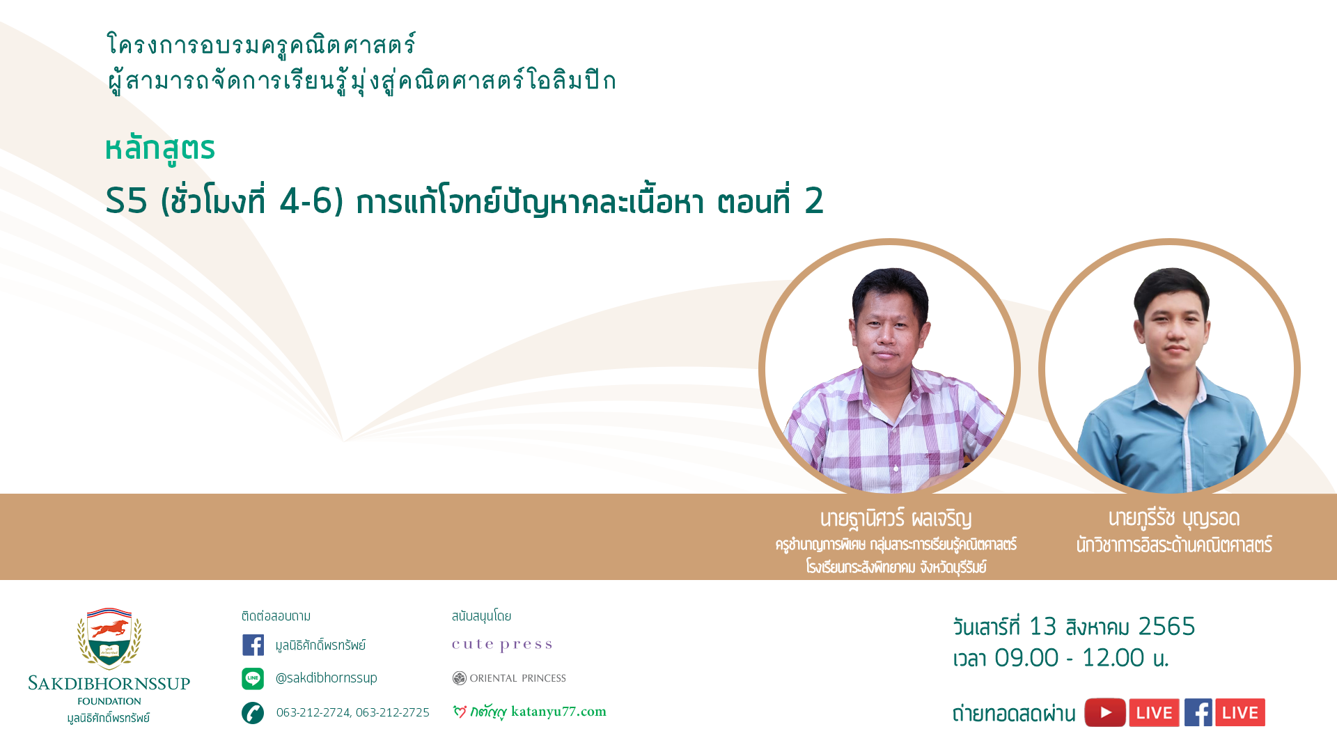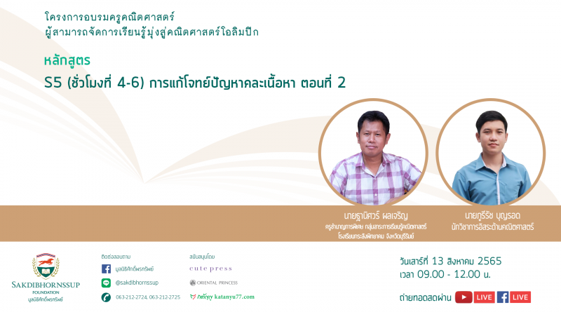 หลักสูตร : S5 (ชั่วโมงที่ 4-6) การแก้โจทย์ปัญหาคละเนื้อหา ตอนที่ 2
