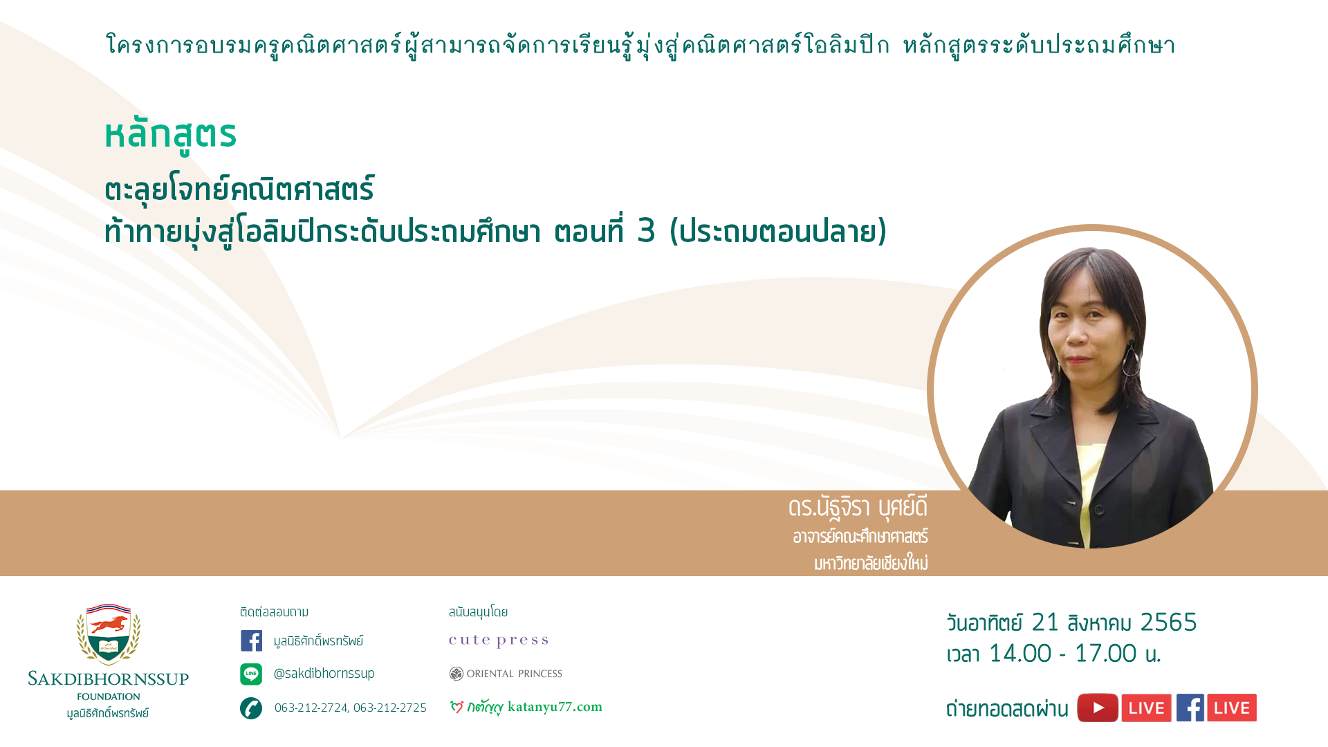 หลักสูตร : ตะลุยโจทย์คณิตศาสตร์ท้าทายมุ่งสู่โอลิมปิกระดับประถมศึกษา ตอนที่ 3