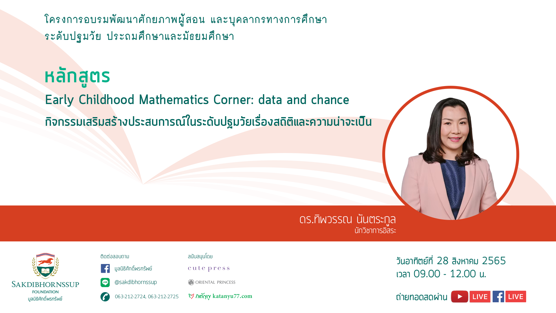 ประกาศรายชื่อผู้เข้าอบรมออนไลน์ : วันอาทิตย์ที่ 28 สิงหาคม 2565 เวลา 9.00-12.00 น. วิทยากร : ดร.ทิพวรรณ นันตระกูล