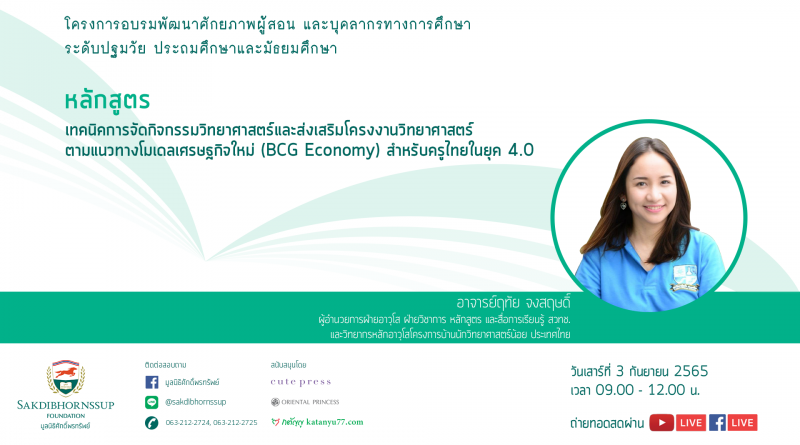 หลักสูตร : เทคนิคการจัดกิจกรรมวิทยาศาสตร์และส่งเสริมโครงงานวิทยาศาสตร์ตามแนวทางโมเดลเศรษฐกิจใหม่ (BCG Economy) สำหรับครูไทยในยุค 4.0