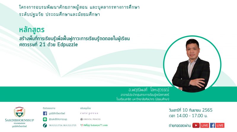 หลักสูตร : สร้างพื้นที่การเรียนรู้เพื่อฟื้นฟูภาวะการเรียนรู้ถดถอยในผู้เรียนศตวรรษที่ 21 ด้วย Edpuzzle