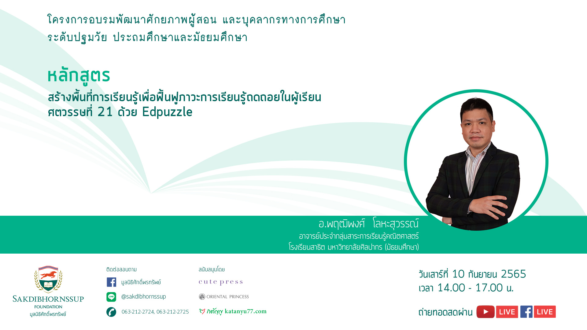 ประกาศรายชื่อผู้เข้าอบรมออนไลน์ : วันเสาร์ที่ 10 กันยายน 2565 เวลา 14.00 – 17.00 น. วิทยากร : อาจารย์พฤฒิพงศ์ โลหะสุวรรณ์