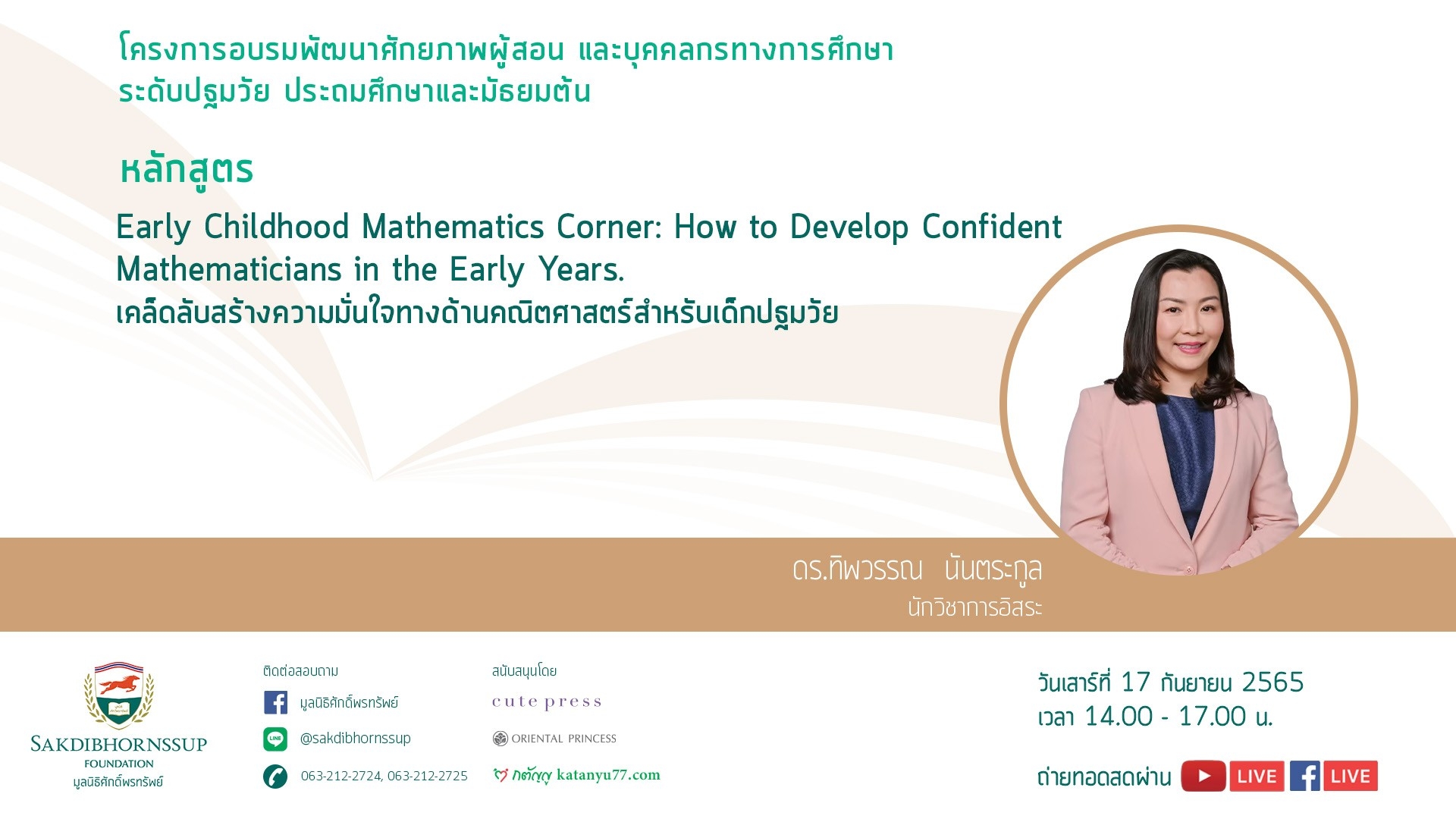 หลักสูตร : Early Childhood Mathematics Corner: How to Develop Confident Mathematicians in the Early Years.