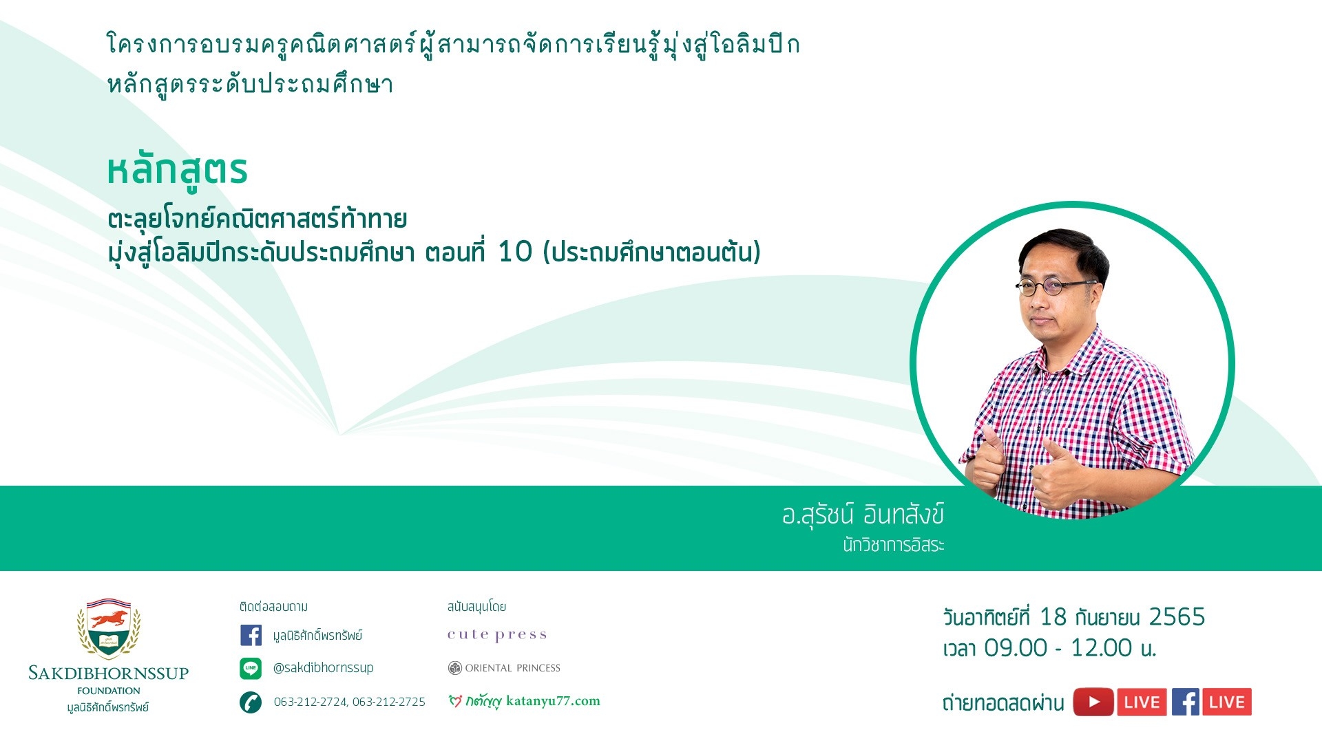 วันอาทิตย์ที่ 18 กันยายน 2565 เวลา 09.00 – 12.00 น.