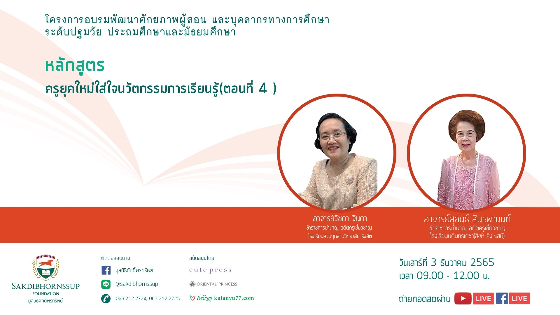 ประกาศรายชื่อผู้เข้าอบรมออนไลน์ : อบรมวันเสาร์ที่ 3 ธันวาคม 2565 เวลา 09.00 – 12.00 น. วิทยากร: อาจารย์สุคนธ์ สินธพานนท์ และวิทยากร: อาจารย์วิชุดา จินดา