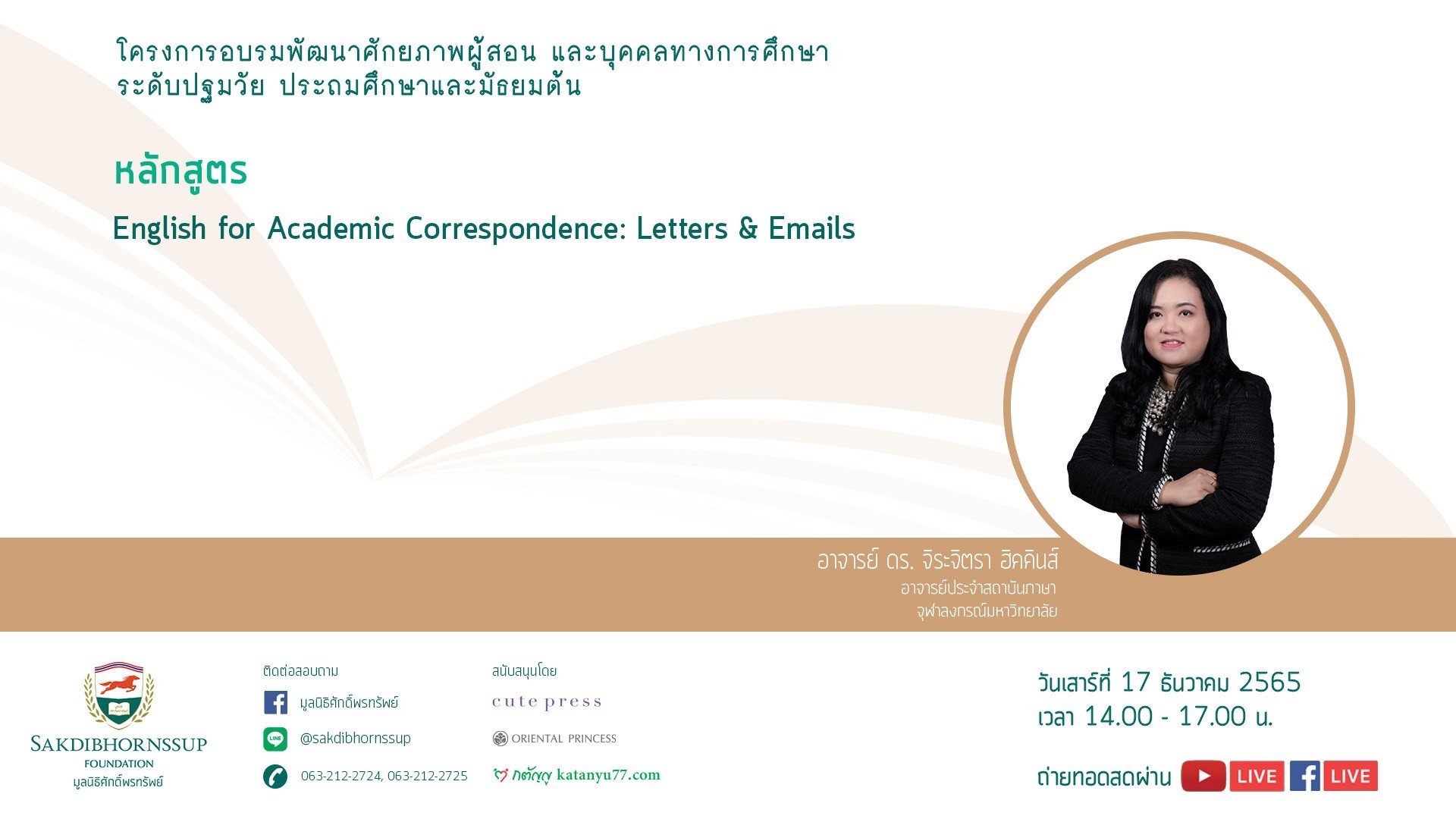 ประกาศรายชื่อผู้เข้าอบรมออนไลน์ : อบรมวันเสาร์ที่ 17 ธันวาคม 2565 เวลา 14:00-17:00 น. วิทยากร: อาจารย์ ดร. จิระจิตรา ฮิคคินส์