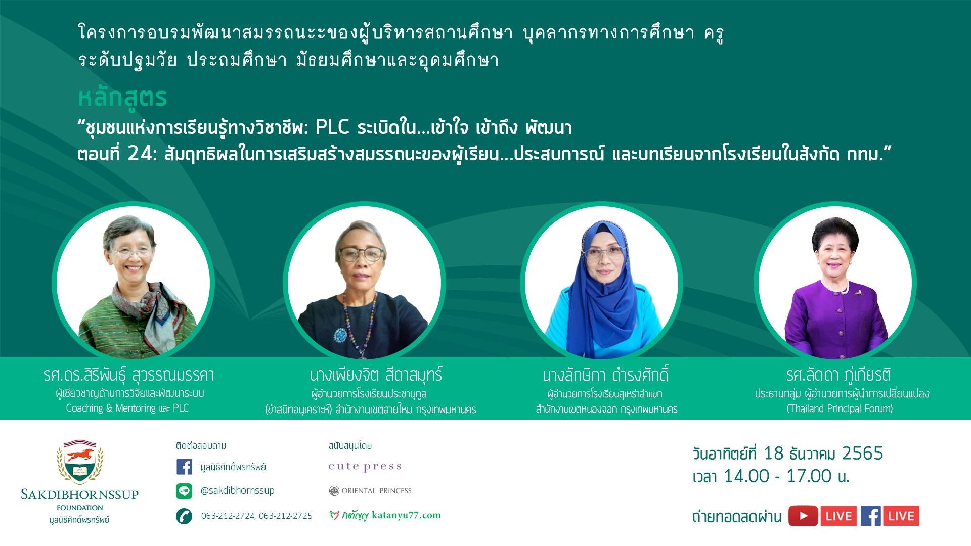 หลักสูตร : “ชุมชนแห่งการเรียนรู้ทางวิชาชีพ: PLC ระเบิดใน…เข้าใจ เข้าถึง พัฒนา ตอนที่ 24