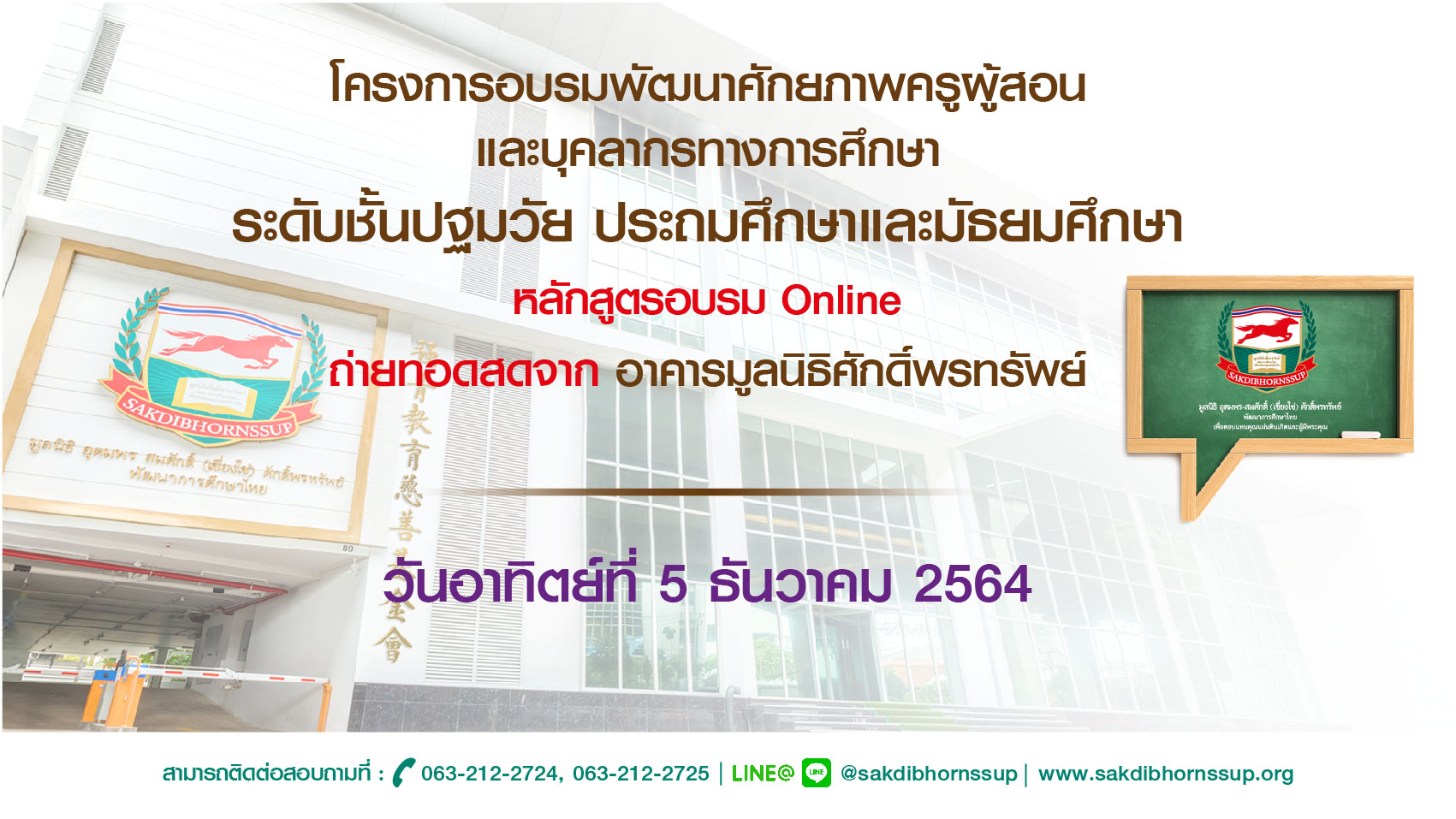 ข่าวประชาสัมพันธ์ รายชื่อหลักสูตรที่เปิดอบรม ประชาสัมพันธ์หลักสูตรอบรมออนไลน์ วันอาทิตย์ที่ 5 ธันวาคม 2564 : 1 หลักสูตร November 30, 2021March 11, 2022 kusol admin วันอาทิตย์ที่ 5 ธันวาคม 2564 สมัครอบรมออนไลน์ คลิก http://register.kusol.org/ เวลา 09.00-12.00 น. 1 หลักสูตร