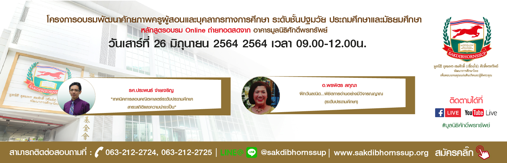 ประชาสัมพันธ์หลักสูตรวันที่ 26 มิถุนายน 2564