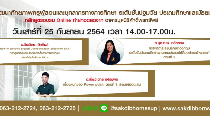 ประชาสัมพันธ์หลักสูตรวันที่ 25 กันยายน 2564